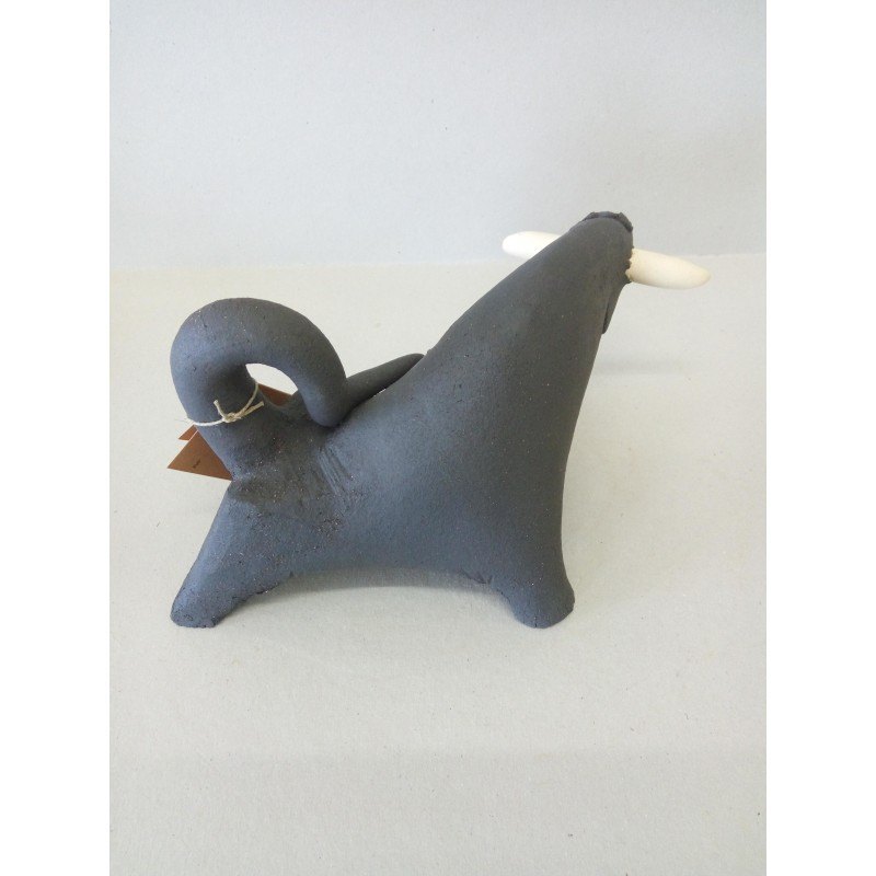 Esta pieza de nuestra colección de toros es modelada en barro negro y blanco; posteriormente es horneada en horno de gas a más de 1200 grados.